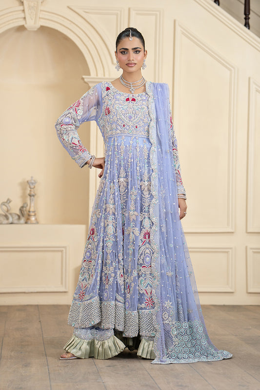 Step into a world of elegance with this enchanting serenity blue pishwas. The flared gown...