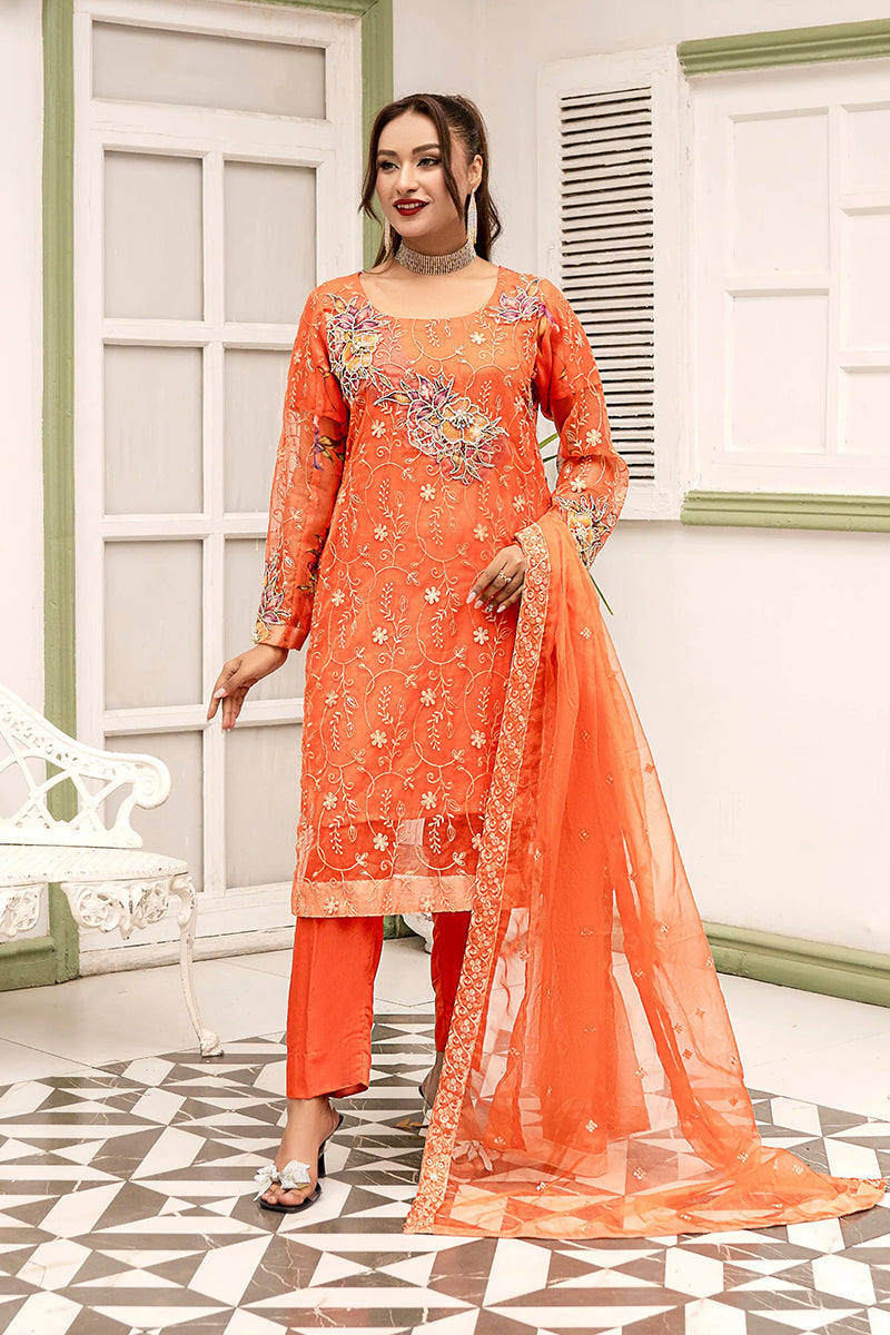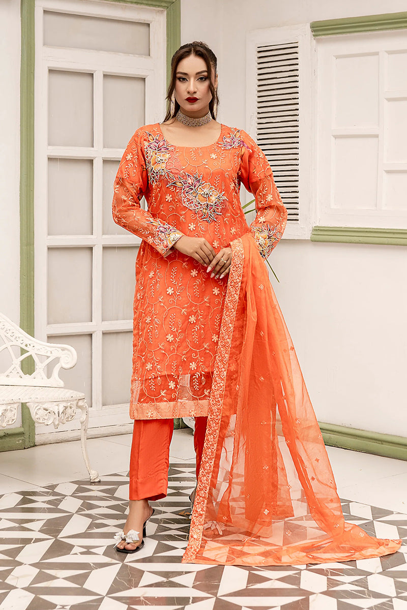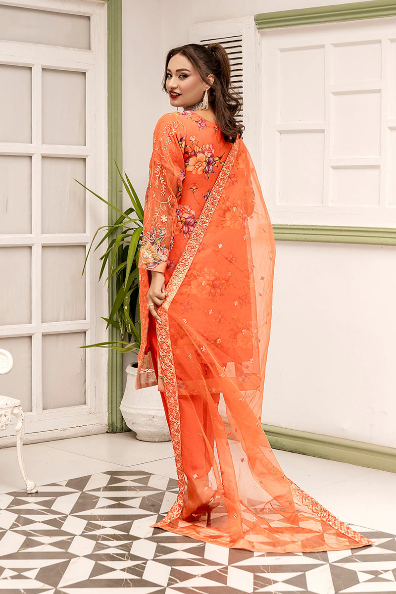Introducing Elora, a breathtaking 3-piece ensemble crafted with exquisite artistry. This organza shirt is adorned with delicate Chikankari embroidery, vibrant floral patchwork, and intricate Nug detailing, creating a masterpiece of elegance and charm. The printed back adds a modern touch, while the 4-side fusing organza dupatta enhances its regal appeal.