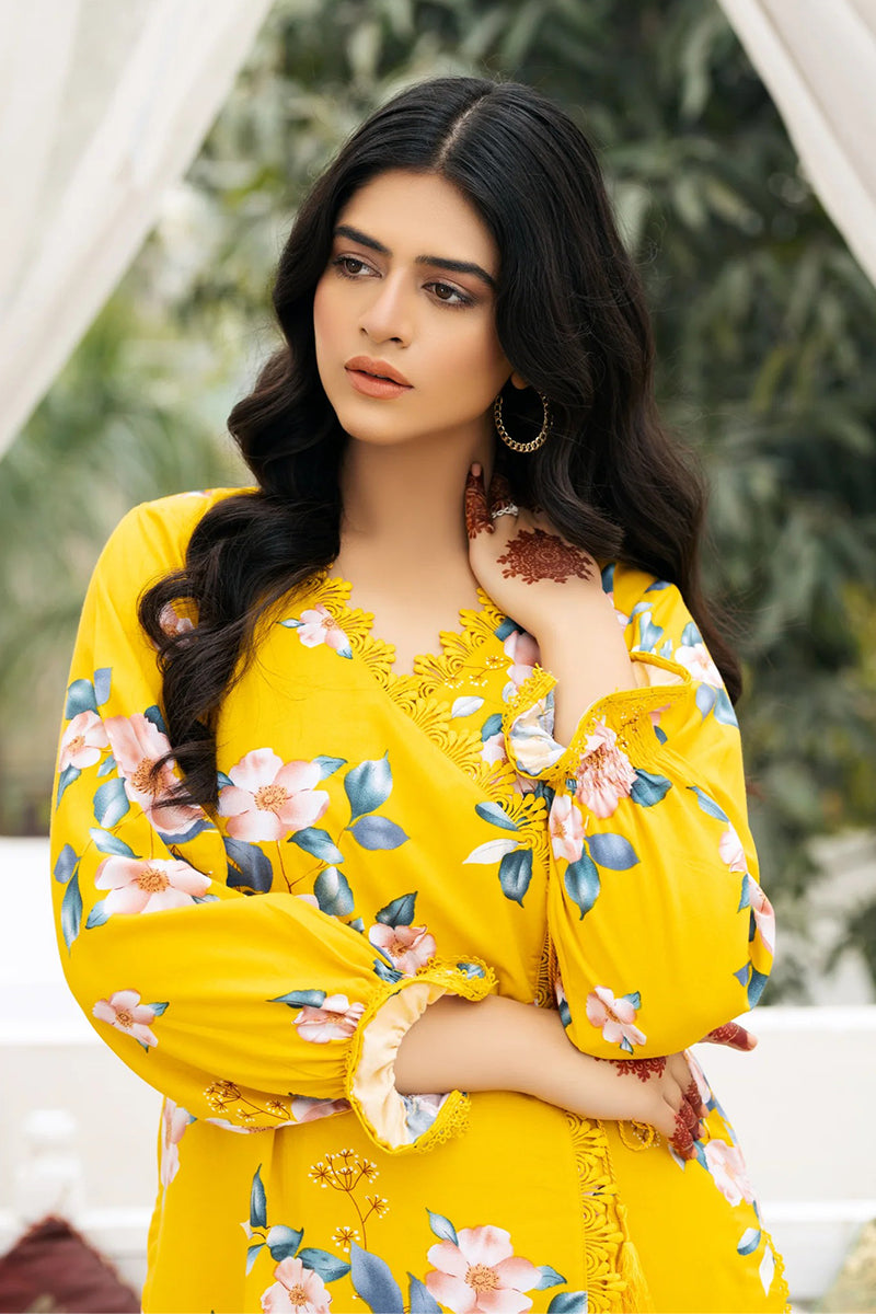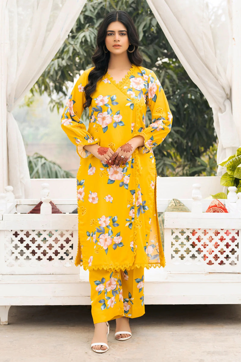 The shirt’s style features an angrakha. The front sides of the shirt are embellished with lace, and lace embellishments are also present on the shirt's wrists with styling. The lace adorns the front, back, daman, and side chalks, all of which are hemmed with matching patches.