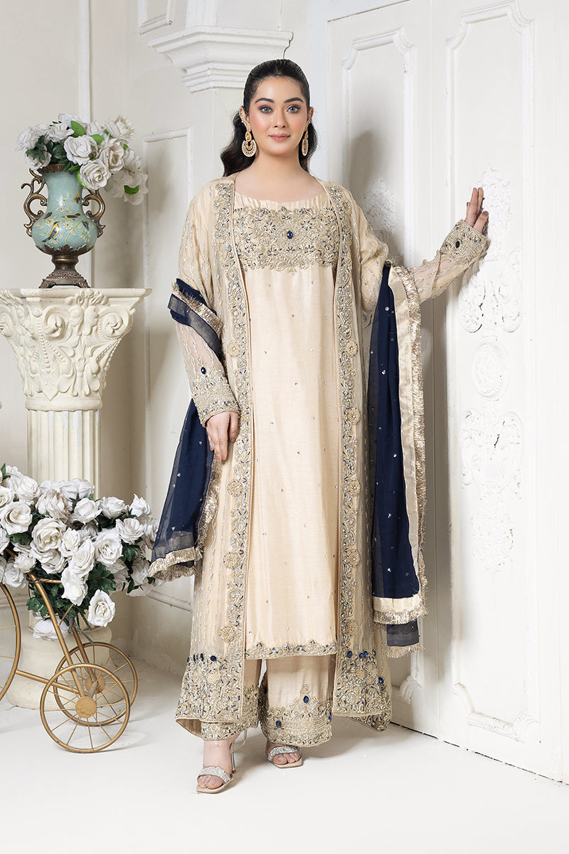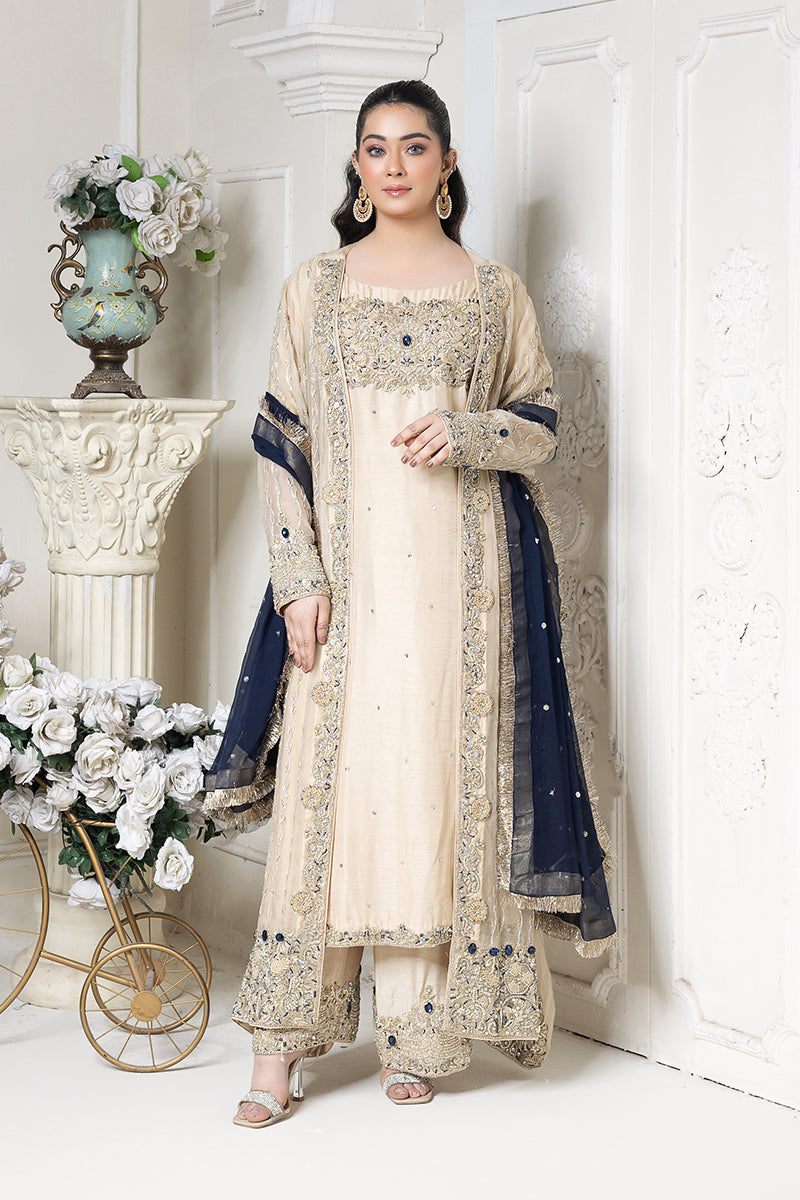 Zarq-e-Naz is a true masterpiece of artisanal craftsmanship, designed to exude grace and sophistication for any occasion. Let this stunning ensemble redefine your style.