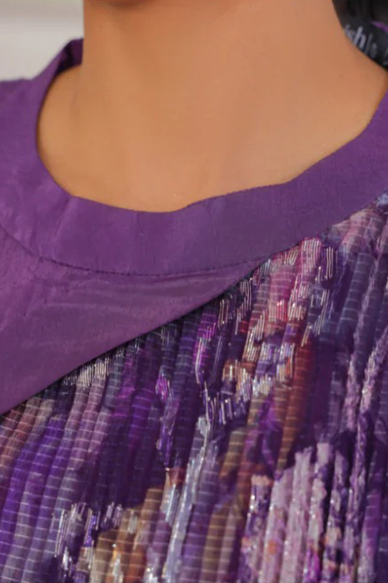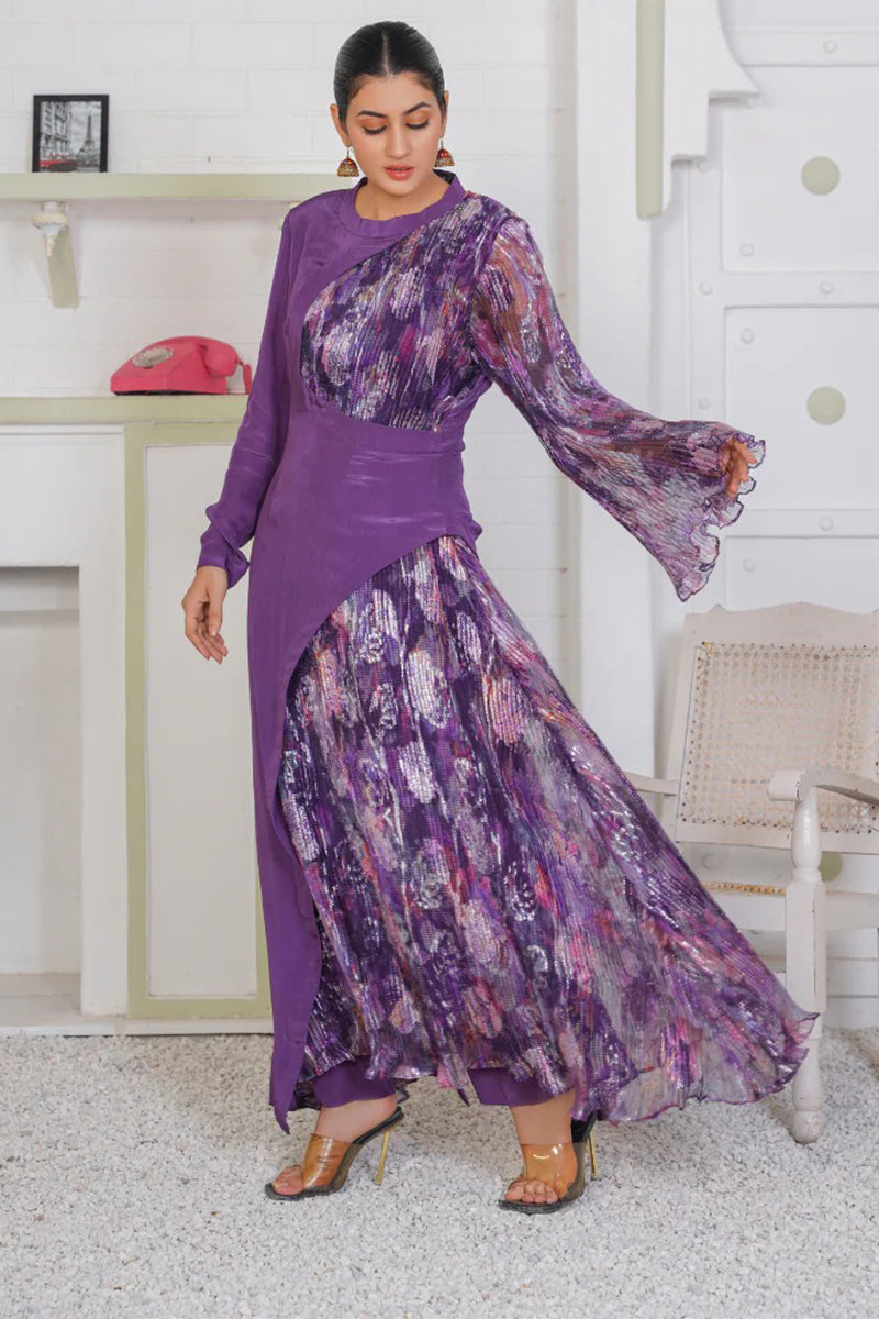 Features: Our stunning two-piece ensemble, featuring a half-cut double press maxi and matching trouser. Crafted from luxurious pure grip and crush zarri tissue fabric, this outfit exudes elegance and sophistication. The half-cut design adds a touch of modernity, while the double press finish gives the fabric a crisp and lustrous appearance. The maxi and trouser combination creates a flowing and comfortable silhouette, perfect for formal occasions, parties, or special events.
